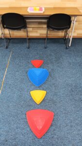 前回ハサミを使って切っていったモミジを使って、紅葉の壁面製作を行いました。