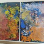 ・かぼちゃ:かぼちゃの台紙に、破いた画用紙を貼って模様にしましたが、破く画用紙をオレンジと黄色の2色から選んでもらいました。