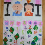 今回は、模造紙2枚をつなげてイラスト部分を作り、その上に雪が降っているように日付を貼りました。