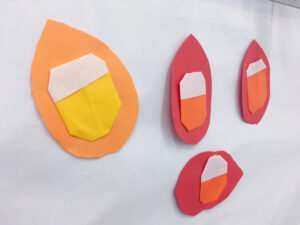 お菓子の部屋で待っていた職員からカボチャのバッグにお菓子を詰めてもらうと、「ありがとうー!!」と大きな声で挨拶をして活動部屋へと戻っていきました。
