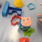 貝の形に切った画用紙にひな祭りにちなんだ絵を貼り、裏返して床に並べます。その中から職員が出した絵と同じ物を探す遊びをしました。急いで沢山めくるお子さんや、自分の気に入った絵を覚えて、その貝をめくろうと待っているお子さんなど、思い思いの遊び方を楽しんでいました。