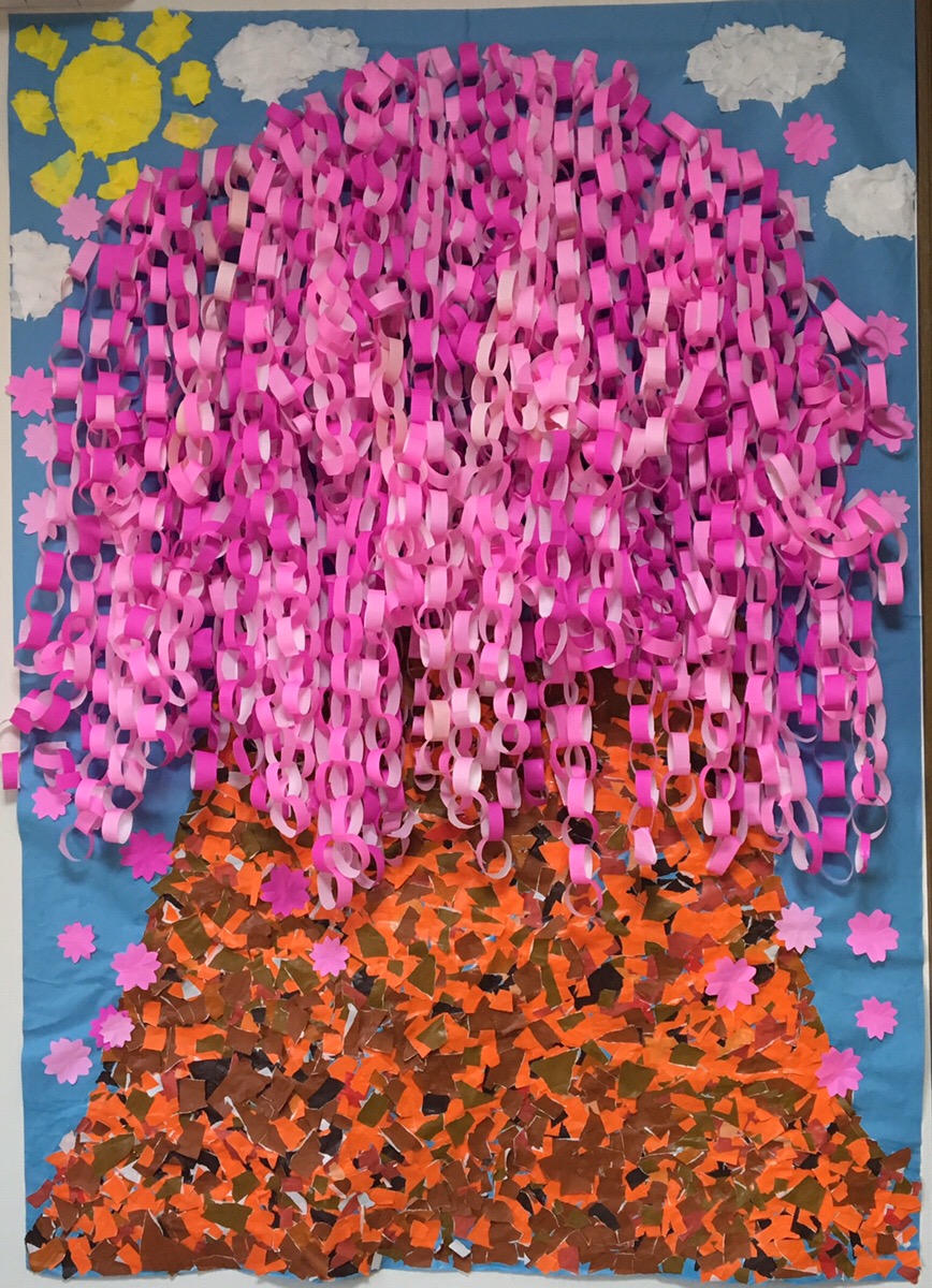 3月の壁面製作に取り組みました 2020-03-25 最終更新日時 : 2020-03-25 NPO法人輝HIKARI 輝HIKARI上宗岡では、3月の壁面製作に取り組んでいました。 ピンクのリングをたくさん繋げて桜にし、木の部分は折り紙を様々な形にちぎって貼り付けました。 みんなで力を合わせて、大きな桜の木が完成しました。 関連