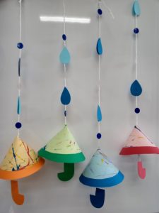 CoCoRearでは6月の壁面制作は梅雨をイメージしました。