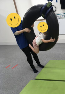 この遊びを通じて、ペットボトルを「押す」動作や水を飛ばすのに必要な力加減を自然と学んでいく様子が見られました。Cくんは最初うまく押せなかったのですが、何度も挑戦するうちに「できた!」と嬉しそうな笑顔を見せてくれました。