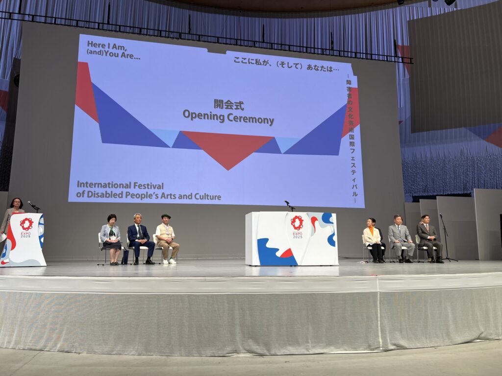 大阪・関西万博のEXPOホールにて、障害のある人々の多彩な文化芸術表現を世界に発信する国際フェスティバル『ここに私が、(そして)あなたは… 障害者の文化芸術国際フェスティバル』の開会式が行われました。