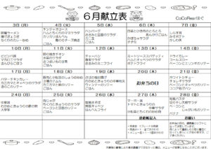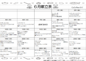 令和7年6月度の給食献立表です 過去の6月の給食の写真