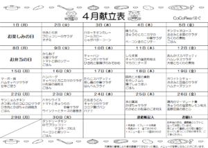 令和7年4月度の給食献立表です 過去の4月の給食の写真