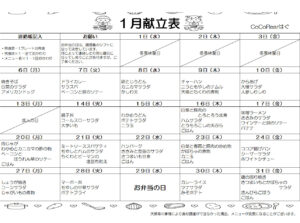 令和7年1月度の給食献立表です 過去の1月の給食の写真
