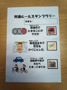 施設名:CoCoRear実施日:4月15日(月)内 容:交通安全スタンプラリー 【目的】 交通ルールを学ぶ 交通安全スタンプラリーに取り組みました。今回は「赤信号で止まる」「青信号を見て左右を確認する」「自転車や車がきた […]